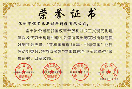 優寶新材是深圳市新材料行業協會常務理事單位、中國中小企業創新100強、深圳自主創新百強中小企業等一系列珍貴榮譽。優寶新材以優質的產品,服務全球客戶1000余家,其中500強企業30余家。