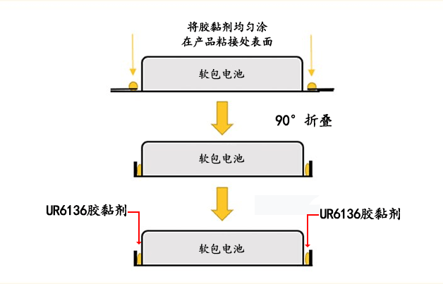 應用場景:UR 6136 PUR膠粘劑主要用于聚合物鋰電池的側邊折邊粘接,確保電池封邊穩定,防止電芯變形或短路,從而提升電池的安全性和性能。